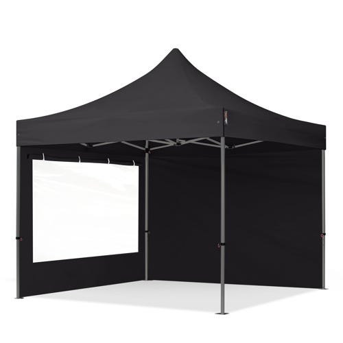 3×3 m Tonnelle Barnum Tente pliante Acier, PES 750, 2 côtés panoramiques, noir
