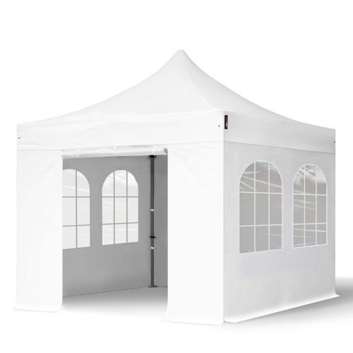3×3 m Tonnelle Barnum Tente pliante Acier, PVC 800, anti-feu, 4 côtés avec fenêtres, blanc