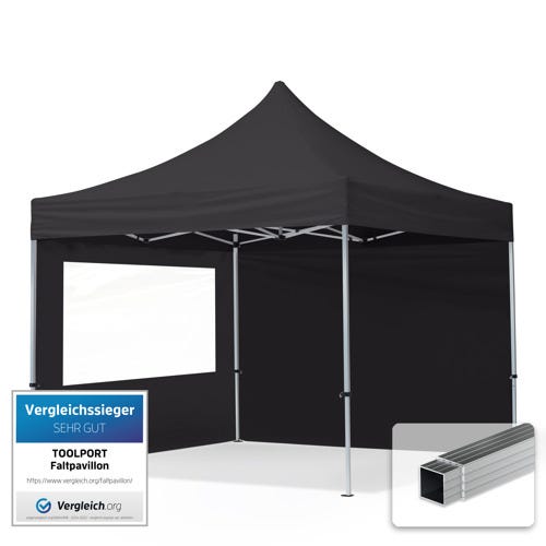 Accueil Tonnelle 3×3 m Tonnelle Barnum Tente pliante Alu, PES 700, 2 côtés panoramiques, noir
