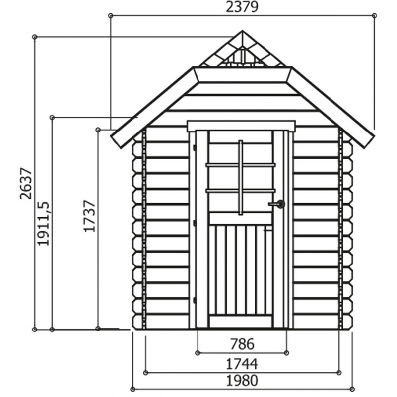 Les extrémités du faîtage sont tronquées pour un style Cottage, qui se caractérise par une pente de la toiture avoisinant les 40° et participe au caractère charmant de ce petit chalet. Cet abri de jardin possède un seuil rabaissé en aluminium, pour permettre un passage aisé, et une grille de ventilation assure une circulation optimale de l’air. La porte en bois est semi-vitrée, avec croisillons, le vitrage est en verre trempé (norme EN12150), et le système de fermeture est sécurisé pour éviter un enfermement accidentel (enfants), avec serrure à clé à l’extérieur et serrure à loquet à l’intérieur.