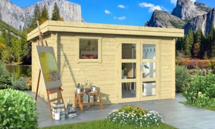 Abri de jardin TOUSCHALETS LYON 13 bois 378x338cm ép 34mm – porte vitrée
