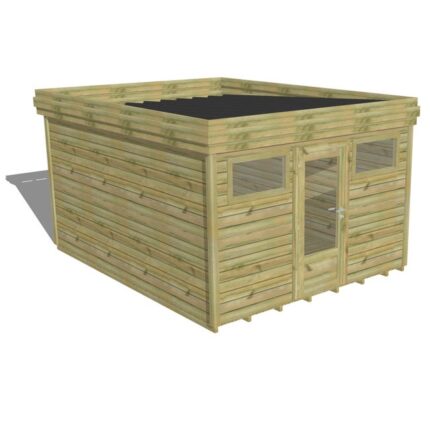 ABRI DE JARDIN bois Pin autoclave 27mm – 3,44×4,34m / 14,9m2 – Bac acier – Plancher bois