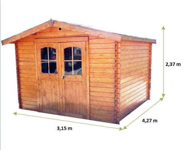 – Abri Bois avec une grande hauteur de faitage qui donne un abri bien proportionné – Grande avancée de toit par rapport à un abri standard – Livré avec une double porte menuisée assemblage tenon mortaise de grande taille 1,80 m – Livré avec feutre bitumé Onduchape de chez ONDULINE – Livré avec toiture en voliges bois massif – Planches de rives voliges larges – Un Abri de Jardin en Bois sans permis de construire FSC Caractéristiques détaillées Matériau : Épicéa massif non traité (label FSC) Dimensions Hors-tout : L 3,15 x P 4,27 x H 2,37 Hauteur paroi : 2,01 m Dimensions au sol : 3,00 x 4,00 m Avancée toit : AV 300 mm / AR 70 mm Surface utile : 10,66 m² Surface extérieure : 13,45 m² Type de porte : Double semi-vitrée dimensions 1,38 x 1,80 m Type de couverture : Feutre bitumé autocollant type ONDUCHAPE ONDULINE VV en rouleau largeur 1 m, norme NF, couleur rouge Couleur : brut Parois : Madriers avec rainure languette en sapin épaisseur 28 mm. Coupe chalet pour un assemblage des parois en angle solide et étanche. Coupe biseautée en bout de lames. Plancher : livré sans plancher Dimension du colis : 400 x 120 x 45 cm Poids du colis : 570 kg Garantie : 2 ans