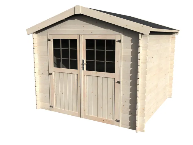 Abri de jardin Leandro-28 Alpholz, 3.9x2.7m dim. ext. (cas échéant incl. débord de toit) naturel, épaisseur paroi : 28mm, 10,6m² totale