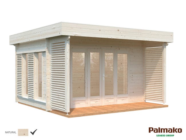 Abri de jardin de Kalle 13,5 m² Palmako, 5×3.8m dim. ext. (cas échéant incl. débord de toit) naturel, 88mm, 19,2m² superficie totale