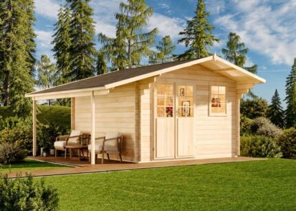 Abri de jardin Valencia-40 XL Alpholz, 5.2×4.2m dim. ext. (cas échéant incl. débord de toit) naturel, 40mm, 21,8m² superficie totale