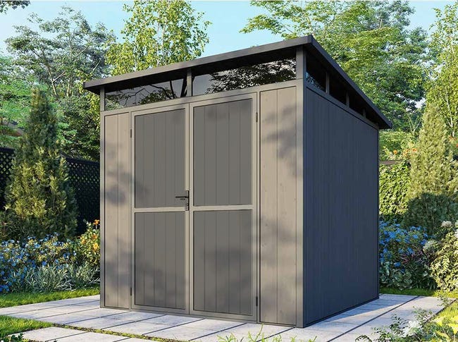 L’aluminium, léger et solide, est un matériau favorisé pour les structures d’abris de jardin. De plus, il est naturellement résistant à la corrosion et nécessite très peu d’entretien. L’association du bois composite et de l’aluminium confère à cet abri de jardin un design moderne.