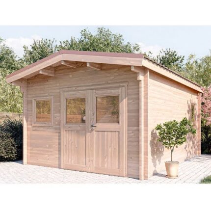 Abri de jardin Maria toit monopente avec annexe Alpholz, 4.5×2.8m dim. ext. (cas échéant incl. débord de toit) imprégné, 40mm, 12,6m² totale