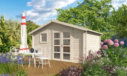 Abri de jardin toit en pente Maria-28 Compact Alpholz, 4.5×3.3m dim. ext. (cas échéant incl. débord de toit) imprégné, 28mm, 14,6m² totale