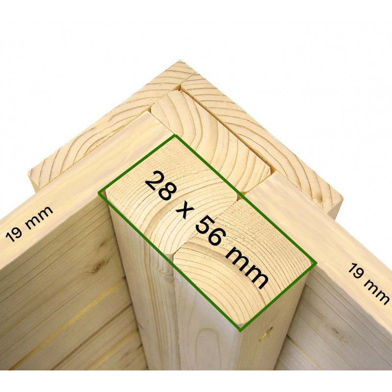Réalisé en bois massif certifié FSC issu des forêts gérées d’une manière responsable, l’abri de jardin 3,49m² Skur 2 est un produit écologique et durable. La peinture Teknos appliquée est une finition haut de gamme qui renforce la résistance du bois à l’humidité et aux attaques biologiques. Pour isoler mieux votre abri de jardin Skur 2 du sol, vous disposerez d’un plancher massif et épais de 19mm.