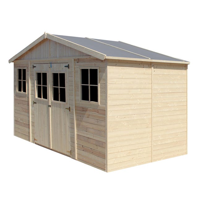 Intérieur spacieux: avec une surface intérieure de 8 m2 et un plafond haut de 183 – 246 cm, vous ne vous sentirez pas à l’étroit lorsque bricolerez