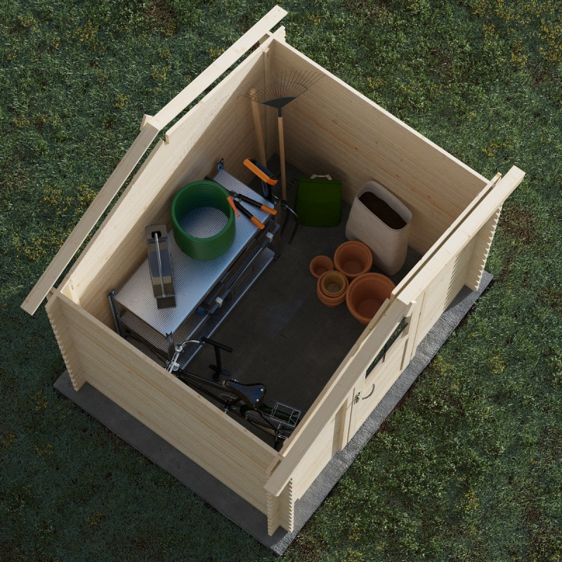 Écologique, l’abri de jardin en bois 4,9m² Juno est réalisé en épicéa massif issu des forêts gérées d’une manière responsable. Les madriers en 19mm sont emboîtables pour un montage simple et rapide. Livrés en état brut, ils nécessitent l’application d’une couche de lasure pour renforcer leur résistance aux intempéries. La peinture dans une couleur au choix est une solution pratique pour personnaliser votre abri de jardin Forest Style.