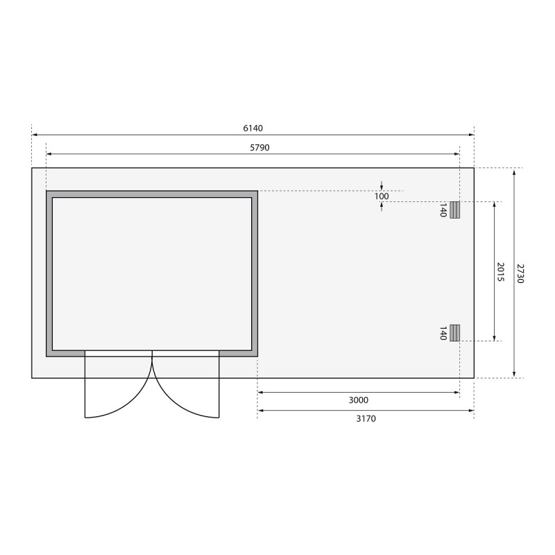 Dimensions extérieures appentis (LxP) : 300x201cm