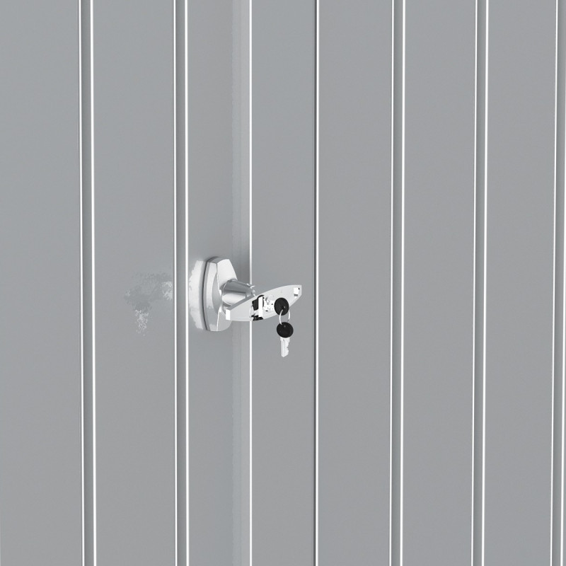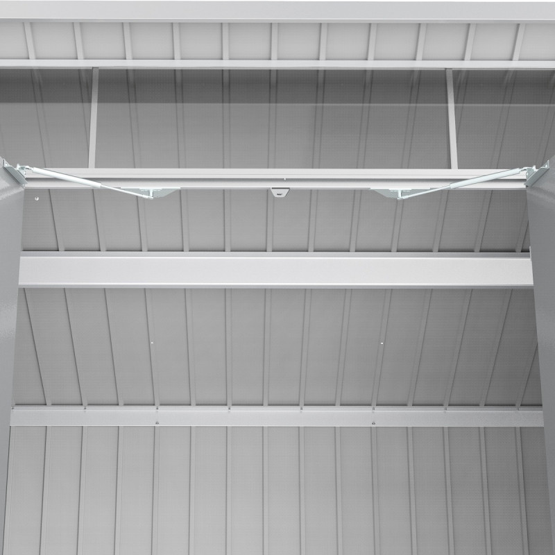 Robuste et d’une durabilité accrue, l’abri de jardin en métal 5,22m² Duramax mettra vos affaires en toute sécurité. La porte double battante équipée d’une serrure cylindrique et de deux clés limitera fortement le risque d’invasions indésirables. Renforcée et doublée, elle bénéficie d’une épaisseur d’environ 33mm. L’ouverture et la fermeture sont très rapides et aisées puisque les vérins à gaz y sont disponibles. À l’arrière de l’abri, vous disposerez également d’une gouttière pour évacuer sans effort les eaux de pluie.