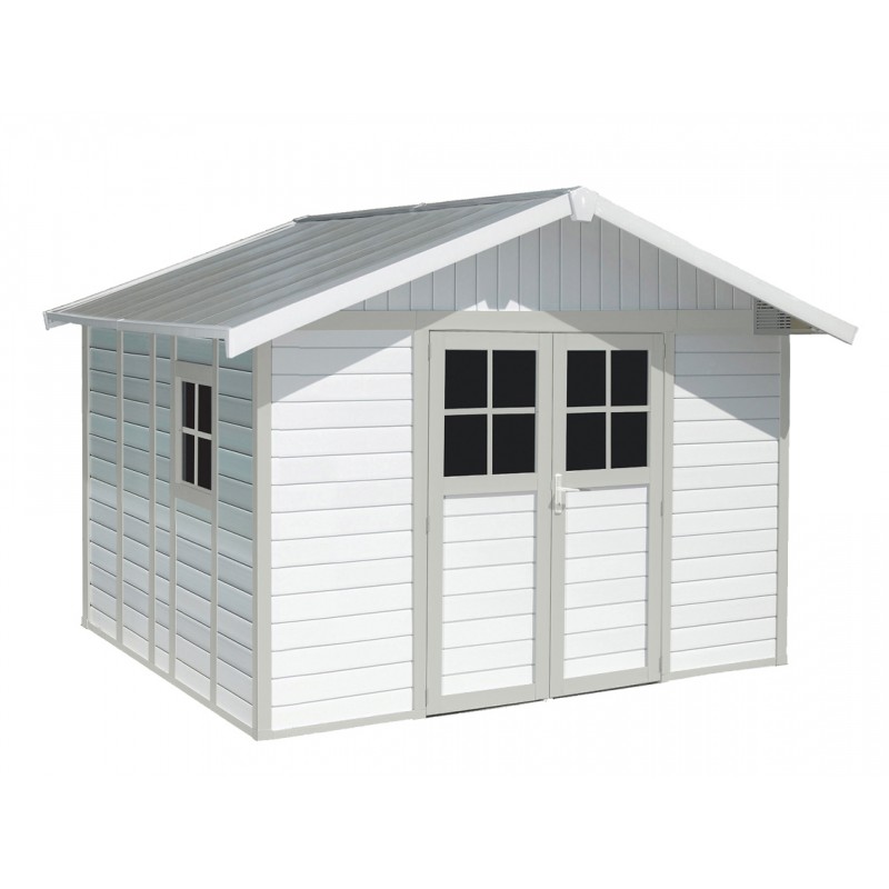Abri de jardin en PVC 11,2m² DECO blanc et gris vert Grosfillex + kit ancrage offert