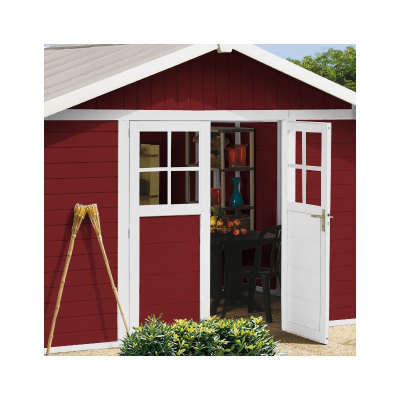 Abri de jardin en PVC 11,2m² DECO rouge et blanc Grosfillex + kit ancrage offert