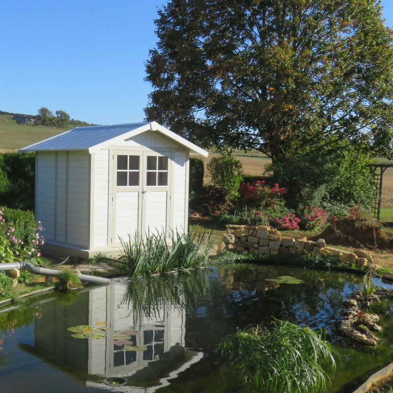 L’abri de jardin en PVC DECO est parfait pour les petits espaces et s’intègre à merveille dans un environnement végétalisé.