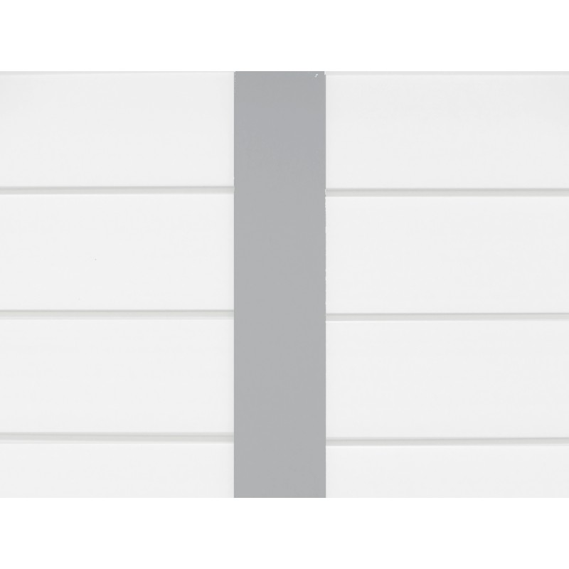 . Couleur : Lames blanches rainurées gris vert + poteaux gris vert,