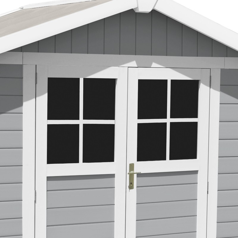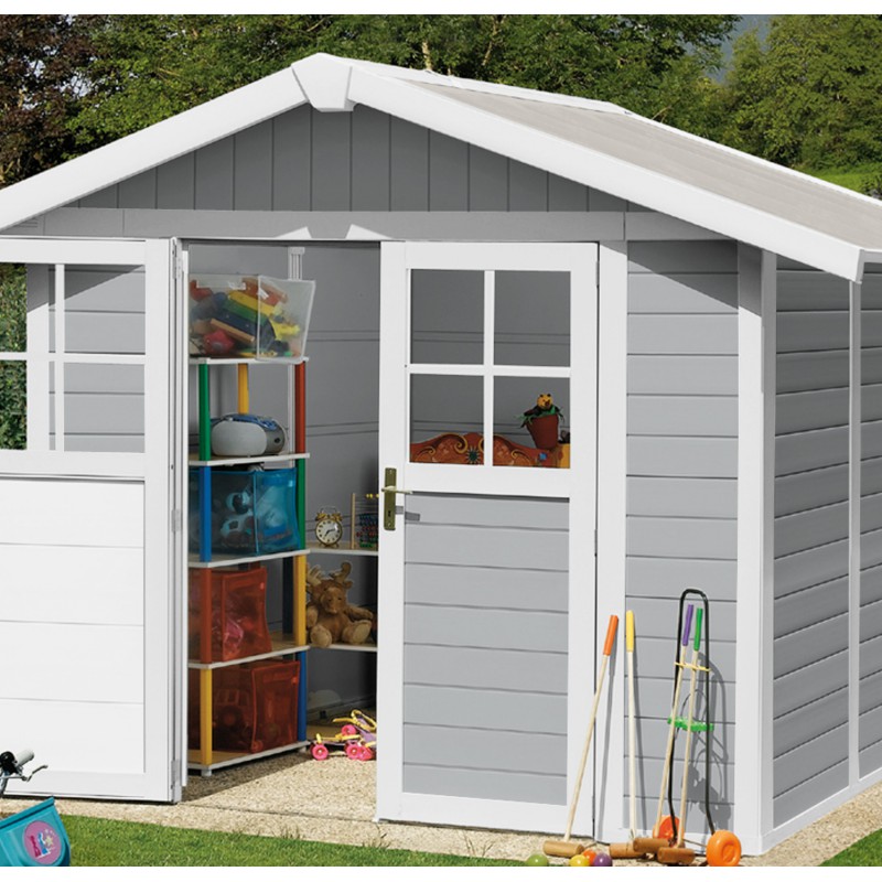 Abri de jardin en PVC 7,5m² DECO gris clair et blanc Grosfillex + kit ancrage offert