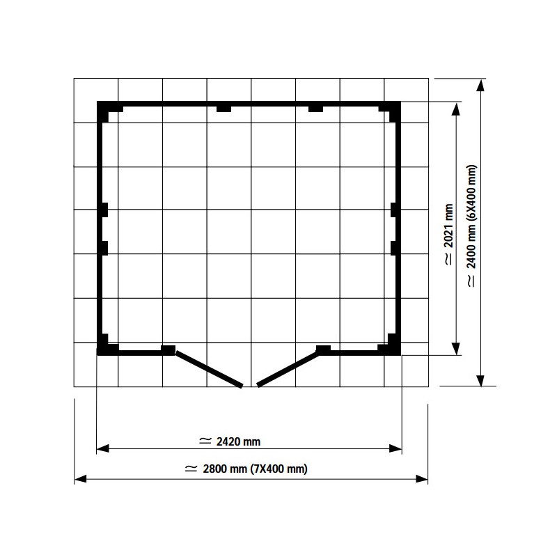 . Dimensions extérieures hors tout (lxP) :  295x261cm, soit 7,7m²,