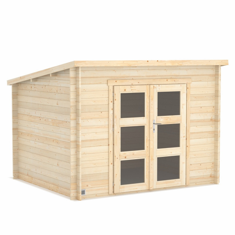 L’avis du spécialiste sur l’abri de jardin monopente en bois massif 7,4m² JUNO Modern – madriers 28mm – Forest Style :