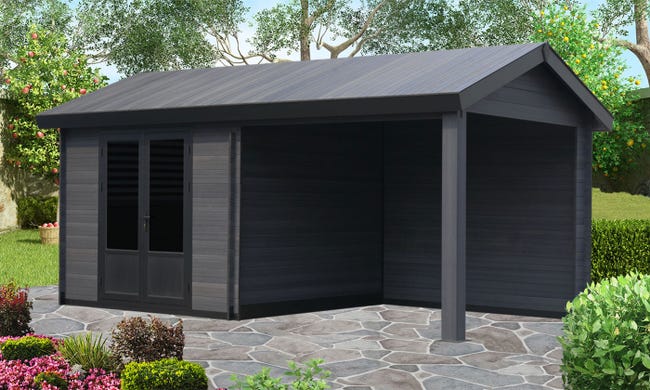 Abri de jardin en bois 18,9m² avec double porte, fenêtres et toit plat
