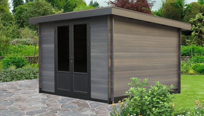 L’abri de jardin composite Kanali saura vous séduire : moderne grâce à son toit plat, il propose une surface extérieure de 3x3m et allie durabilité et esthétisme, le tout sans entretien. Doté d’une porte semi-vitrée équipée d’une serrure permettant de remiser vos biens en toute sérénité, il est livré sans revêtement de toit.Détails de livraison :