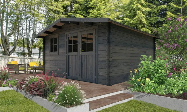 En quête d’un abri de jardin mêlant luminosité et espace généreux ? Optez pour le PERIGORD 16 à toit double pente ! Sa surface de 14,44m2 vous permettra d’envisager un usage polyvalent : zone de stockage, atelier, pool house … Doté d’une double porte semi-vitrée permettant facilement le passage des objets encombrants, le PERIGORD 16 est également pourvu d’une fenêtre fixe sur le mur latéral. En madriers de 28m, cet abri traité autoclave gris ne réclamera qu’un entretien ultérieur réduit. Livré sans revêtement de toiture, il nécessitera l’acquisition d’une solution de toit pérenne.Détails de livraison :