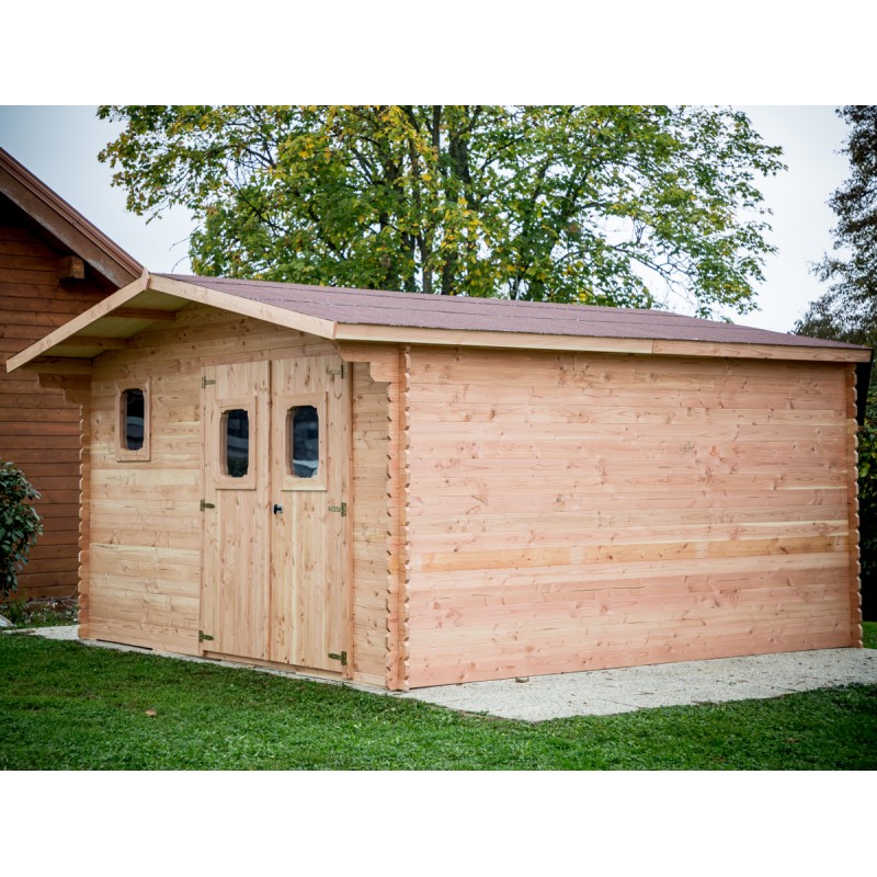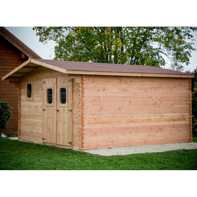 Le montage de cet abri se réalise facilement, par empilement des madriers en Douglas massif de 28mm d’épaisseur. L’imbrication des parois entre elles aux angles de l’abri améliorent la stabilité structurelle, en plus de l’effet décoratif. Les madriers s’unissent via un système de rainures et languettes, ils sont triés sans aubier, et sont naturellement imputrescibles.