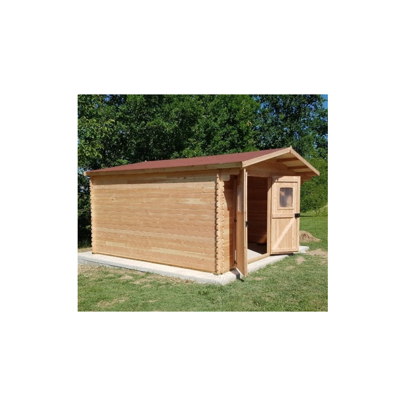 • Abri en bois de belle finition aspect brun-rosé, naturellement durable ne nécessitant pas de traitement chimique