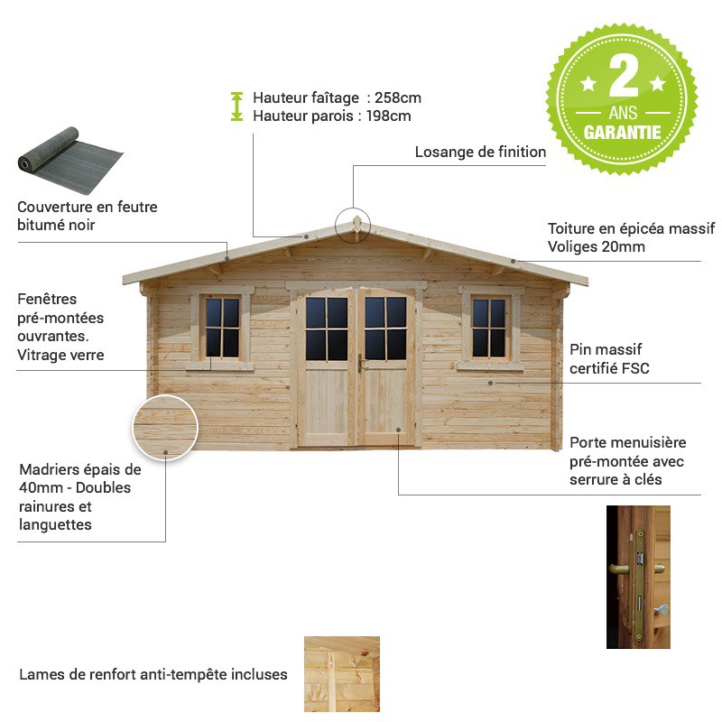 L’avis du spécialiste sur l’abri en bois massif brut 19,8m² PLUS 40mm brut Gardy Shelter