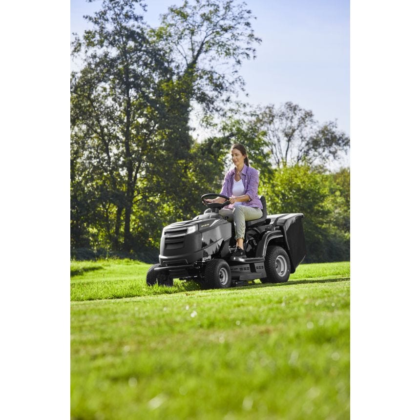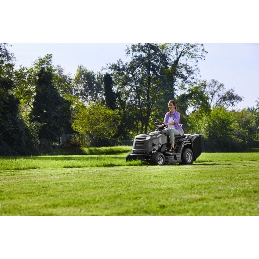 L’AT4 84 HA est livrée avec un carter de coupe de 84 cm et est alimentée par un moteur monocylindre 414cc STIGA haute performance. Il dispose d’une transmission hydrostatique et collecte l’herbe dans un spacieux bac de 200 litres. Kit mulching en option.