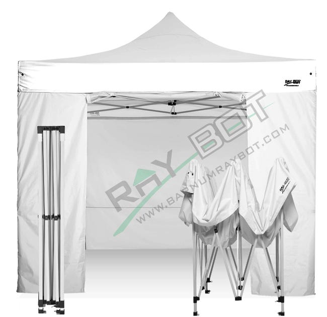 - Prédisposition sur chaque barnum de bande velcro pour la fixation d’une véranda par-soleil/par-pluie.