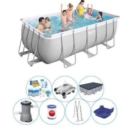 Paquet de piscine tout en 1 – Bestway Power Steel Rectangulaire 404x201x100 cm