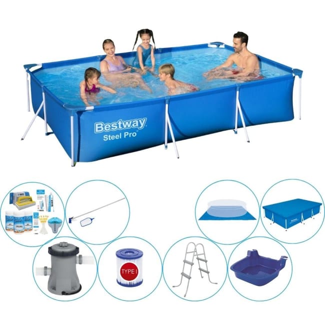 Bestway Piscine - Steel Pro - 300 x 201 x 66 cm - Avec WAYS Kit d'entretien & Pompe de filtrage 189,50€ TTC