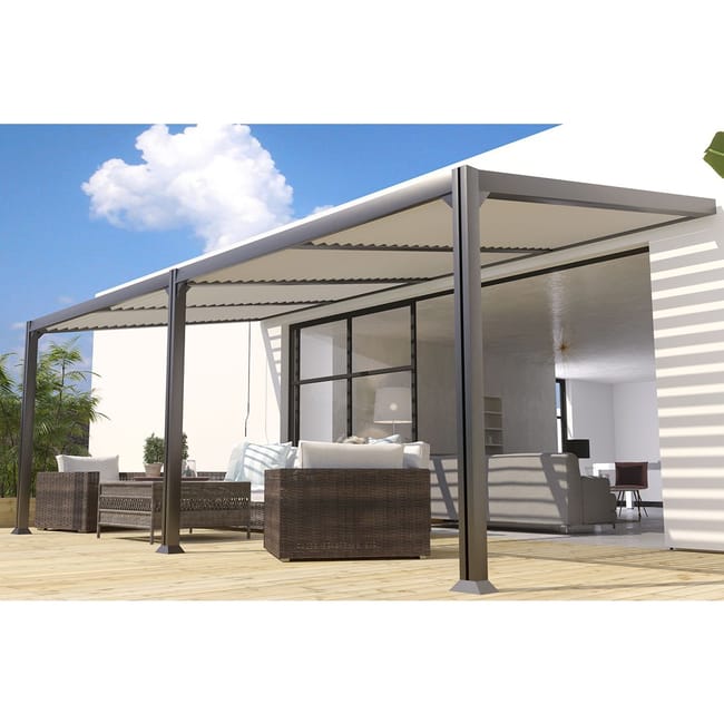 Pergola bioclimatique adossée TIERAL Cadix aluminium gris anthracite, 12.26 m²