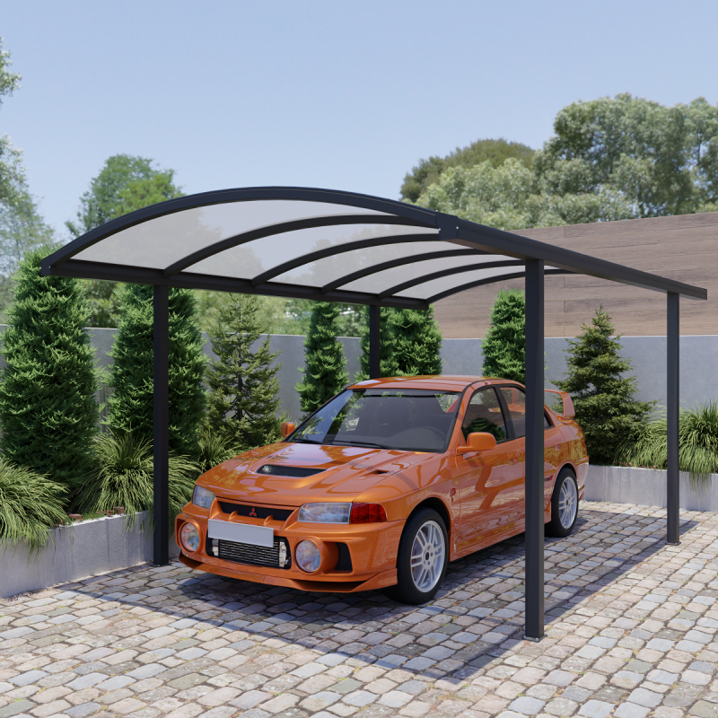 Carport en alu gris et polycarbonate 1 voiture 23,3m² Arcadia™ 6400 – Canopia