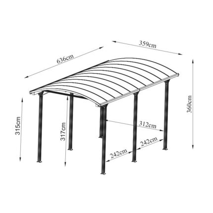 Il ne craint pas la corrosion, et pourra abriter en toute sécurité votre véhicule, bateau, équipement de jardinage ou pourra servir de bûcher pour entreposer votre bois de chauffage. L’ancrage au sol n’est pas inclus, il varie en fonction du support. L’usage de vis et chevilles est recommandé pour une installation sur sol en dur, ou de pieds d’ancrage pour une installation sur gazon. Ses dimensions intérieures sont de 602x361x254cm et il couvre une surface de 22,57m².