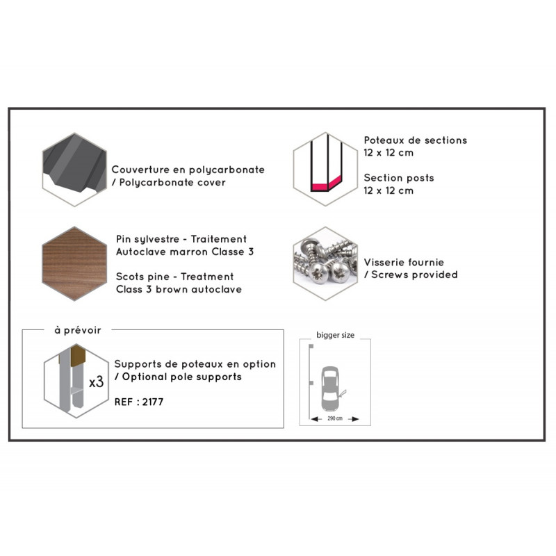 Carport autoportant en bois lamellé-collé 600x300cm Badajoz – Maderland