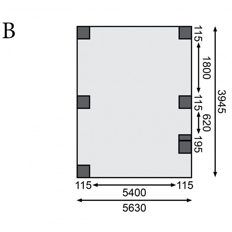Dimensions extérieures (LxP) : 563×394,5cm