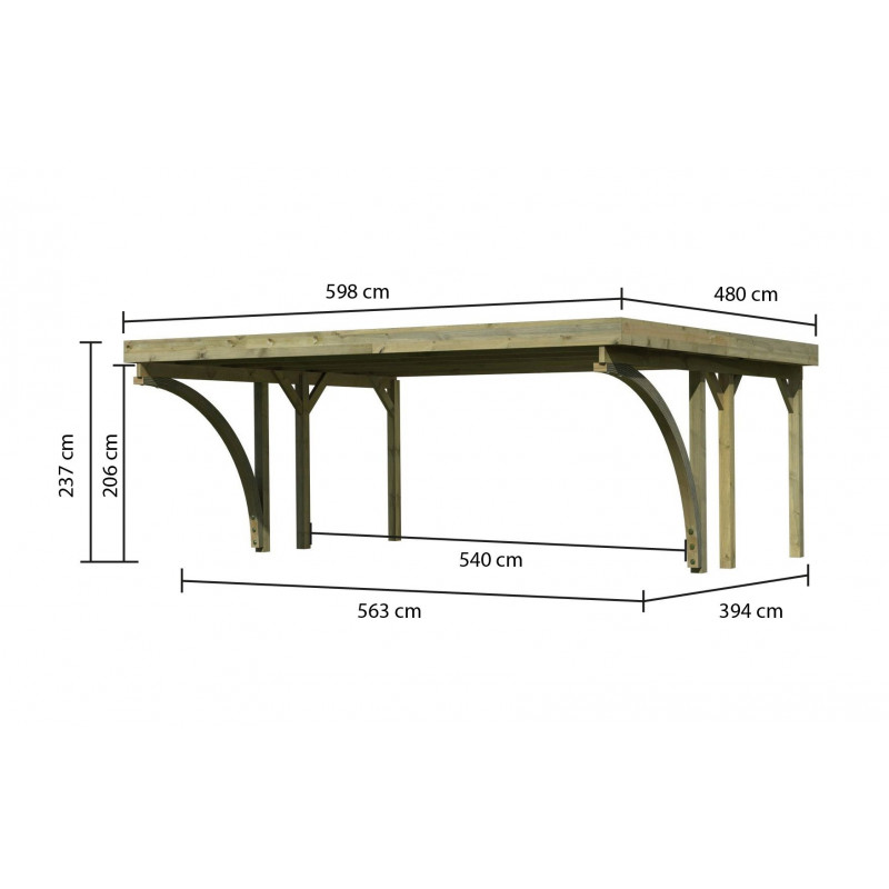 Carport double en bois autoclave 28,3m², toit en PVC gris et deux poteaux en arc – KARIBU