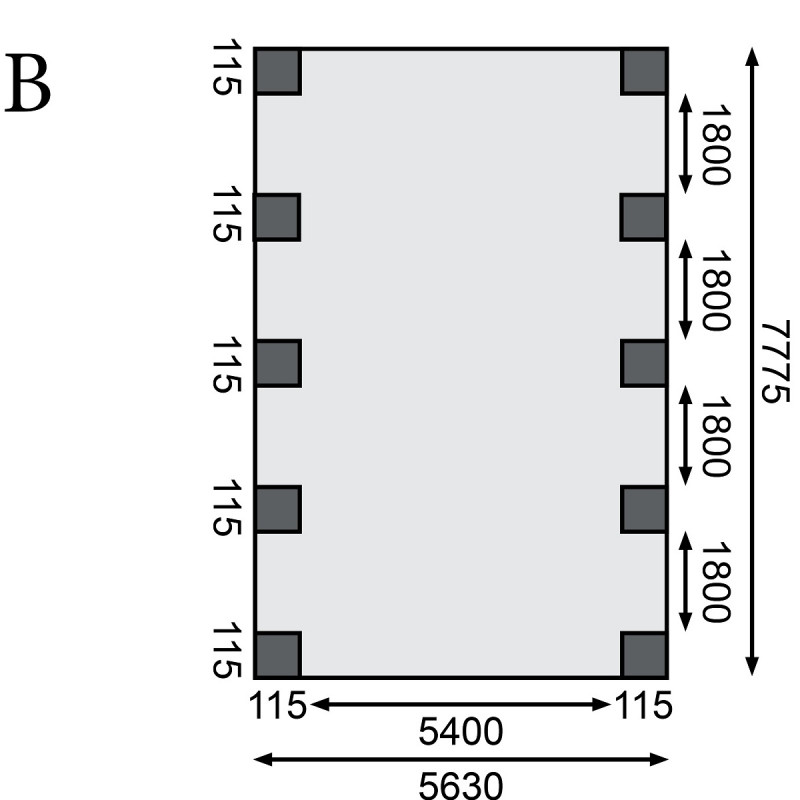 Dimensions extérieures (LxP) : 563×777,5cm