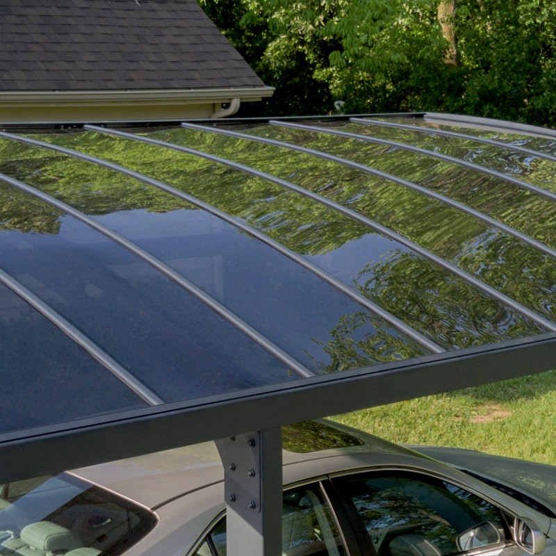 Le carport autoportant Arizona™ 5000 Breeze de Canopia by Palram est un petit bijou de design contemporain. Ses lignes élancées, son coloris gris anthracite et les panneaux teintés de sa toiture en polycarbonate seront un véritable point d’intérêt dans votre jardin.