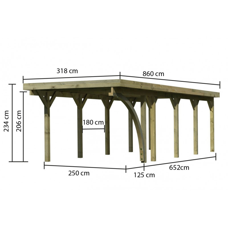 Carport en bois autoclave 26,9m², toit en acier et deux poteaux en arc – KARIBU