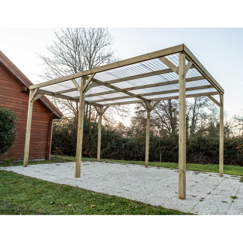 Carport en pin traité autoclave 15m² avec couverture PVC Habrita
