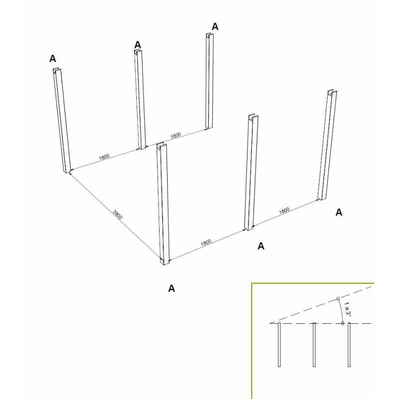 • 8 poteaux en bois massif de section 120x120mm, traités autoclave