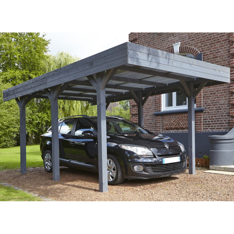Carport simple 15,80m² en bois lasuré gris anthracite Louison Forest Style