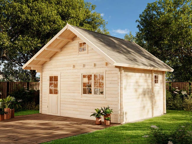 Abri de jardin Pepe Optima Alpholz, 6.2×4.6m dim. ext. (cas échéant incl. débord de toit) naturel, épaisseur paroi : 40mm, 28,6m² totale