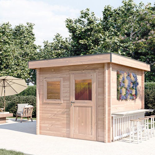 Notre chalet de jardin TALIPA est robuste et durable ! Avec ses madriers de 55mm et son toit plat, il ajoute une touche contemporaine à votre jardin. Fabriqué dans l’Ain par nos experts menuisiers, ses qualités de finitions et sa durabilité vous apporteront toute la sérénité pour profiter d’une pièce à vivre supplémentaire dans votre jardin. Ses 8,41m² d’emprise au sol vous permettent d’installer ce chalet sans avoir besoin d’un permis de construire. Vous projetez d’installer un chalet de jardin solide et durable, le TALIPIA est fait pour vous ! Avec sa surface intérieure de 6,7m², il peut être utilisé comme une véritable pièce de vie supplémentaire dans votre jardin, un atelier, un pool house ou une petite salle de sport ! Ce chalet de jardin est réalisé avec des madriers de 55mm d’épaisseur en bois Douglas issu de forêts Françaises durablement gérées, un bois naturellement durable qui vous garantit longévité et tranquillité pour traverser sereinement les saisons Le chalet de jardin TALIPIA est proposé avec une porte simple et 1 fenêtre bois et sa toiture est réalisée en bacacier pour une plus grande résistance aux intempéries et une meilleure durabilité. Côté installation : le montage de nos chalets est facilité grâce à une notice qui détaille chaque étape avec soin et précision. * Nos chalets sont 100% fabriqués en région Auvergne Rhone Alpes
