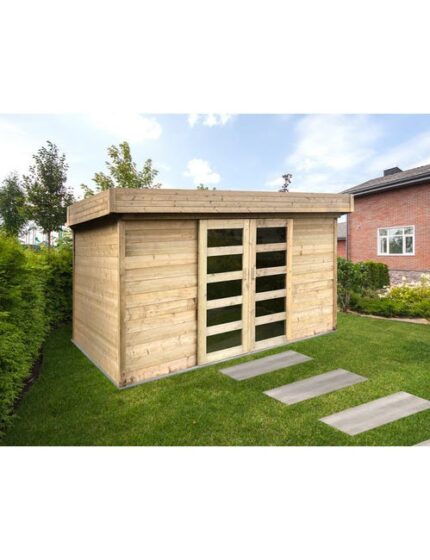 Abri de jardin TOUSCHALETS LYON 13 bois 378x338cm ép 34mm – porte vitrée